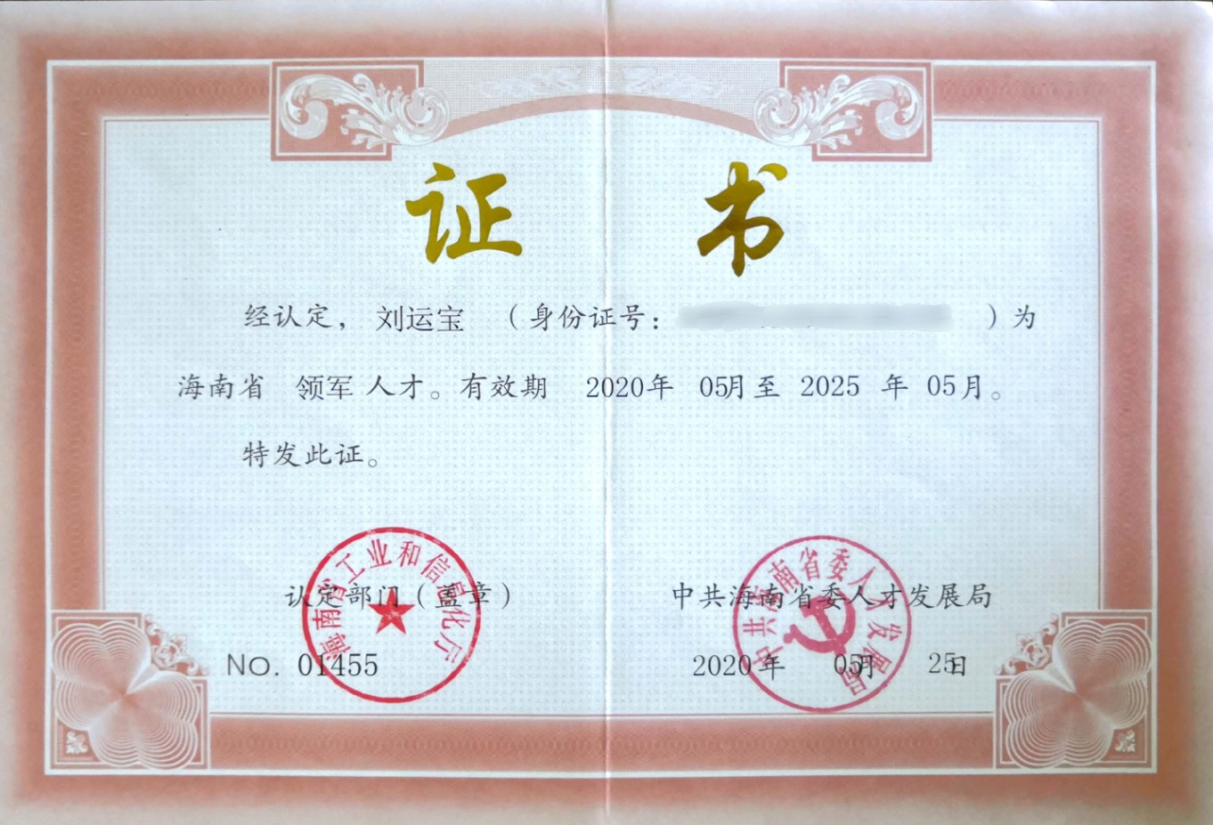 2020年5月,公司總經理(lǐ)劉運寶被評為(wèi)海南領軍人(rén)才。海南領軍人(rén)才是海南省委省政府、海南省人(rén)力資源保障廳等部門(mén)為(wèi)建設海南自由貿易區(qū)(港)引進的一類高(gāo)層次人(rén)才。